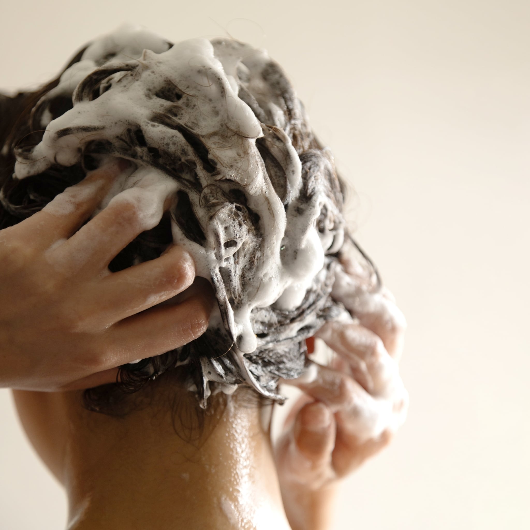 ❸ 頭皮はしっかり流し、毛先は有効成分がやや残るくらいに優しくすすぐ。